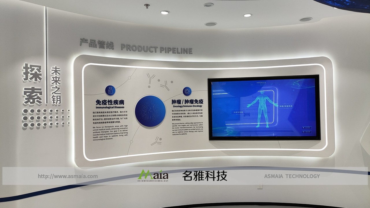 据悉,自项目启动以来,名雅科技组建专业团队,与该医药公司深度对接需求,针对肿瘤及自身免疫性疾病领域创新药物研发成果展示的特殊性,量身定制多媒体硬件配置与软件功能方案。在硬件安装与软件调试阶段,团队严格把控质量与进度,克服多重技术难点,最终建成的多媒体系统不仅满足了企业对硬件性能、软件稳定性的高要求,更通过流畅的交互体验,让展厅成为传递企业创新精神的重要载体。